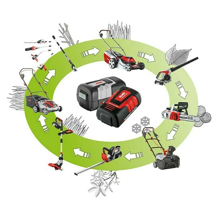 Der AL-KO Akku mit 40 V und 5 Ah Li-Ion passt zu allen Produkten aus der Energy-Flex-Serie und hat eine Herstellergarantie von 2 Jahren. Die Lithium-Ionen-Technologie unterbindet den Memory-Effekt und ermöglicht dadurch jederzeitiges Aufladen ohne Abstriche in der Lebensdauer. Die speziellen Samsung-Zellen sorgen für eine erhöhte Leistung bei kompakter Größe. Da der Akku sich nicht selbst entlädt, ist eine Arbeitszeit von bis zu 140 Minuten möglich.