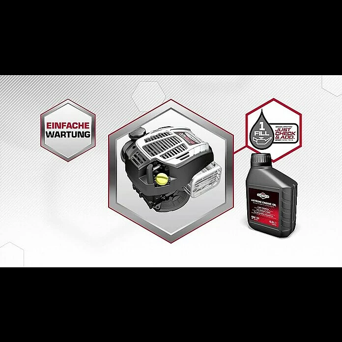 Der Highline Benzin-Rasenmäher 46.6 SB-B PLUS von AL-KO mit einer Schnittbreite von 46 cm eignet sich ideal für Rasenflächen bis zu 1.400 m². Angetrieben wir der Rasenmäher mit einem Hinterradantrieb. Dieser sorgt in Kombination mit den XL-Leichtlaufrädern für ein müheloses Vorankommen beim Mähen. Der ergonomisch geformte Führungsholm erhöht den Komfort während der Arbeit. Sein 2,4 kW (entspricht ca. 3,12 PS) starker Briggs & Stratton Motor sorgt für mehr Leistung und weniger Verbrauch. Der Benzin-Rasenmäher ist mit einem 70 l großen Fangkorb mit Füllstandsanzeige ausgestattet. Durch die MaxAirflow-Technologie gelangt der Rasen bis nach hinten in den Fangkorb und muss so seltener geleert werden. Sie Schnitthöhe lässt sich zentral in 7 Stufen von 30 mm bis 80 mm einstellen.