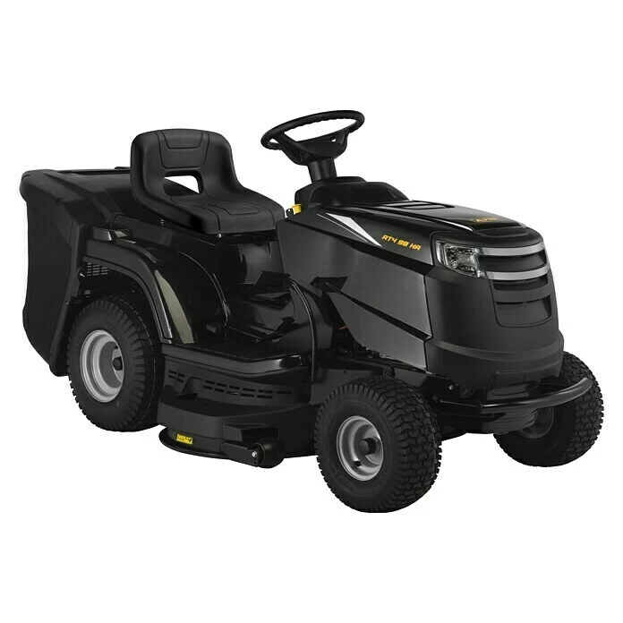 Der ALPINA Rasentraktor AT4 98 HA bietet einen leistungsstarken Motor, einfache Bedienung, Vielseitigkeit und ist perfekt für große Rasenflächen. Das Herzstück des AT4 98 HA ist der ST 450 Motor (Powered by STIGA) mit 432 cm³ Hubraum und 7,2 kW / 9,8 PS bei 2600 U/min. Für einen effizienten Schnitt ist das Mähwerk mit zwei gegenläufigen Doppelmessern ausgestattet und kann bequem über die elektromagnetische Kupplung zugeschaltet werden. Danach steht Dir eine 98 cm Schnittbreite zur Verfügung, die sich in 7 Stufen, von 25 bis 80 mm, in ihrer Schnitthöhe regulieren lässt. Hierbei wird durch die Tasträder stets sichergestellt, dass ein Kontakt des Mähwerks mit dem Boden vermieden wird. Der AT4 98 HA verfügt über einen Wasseranschluss, der die Reinigung des Mähraumes erleichtert. Mit dieser Ausstattung eignet sich der AT4 98 HA für Rasenflächen von bis zu 4000 m². Durch die LED-Scheinwerfer und das LED beleuchtete Armaturenbrett ist selbst das mähen in der Dämmerung kein Problem. Der ALPINA AT4 98 HA kann durch zahlreiches Zubehör wie zum Beispiel ein Mulchkit, ein Prallblech für den Heckauswurf und ein Schneeschild für den Winterdienst, erweitert werden. Der Rasentraktor wird teilmontiert geliefert, Fangkorb, Lenkrad und der Sitz müssen montiert werden.