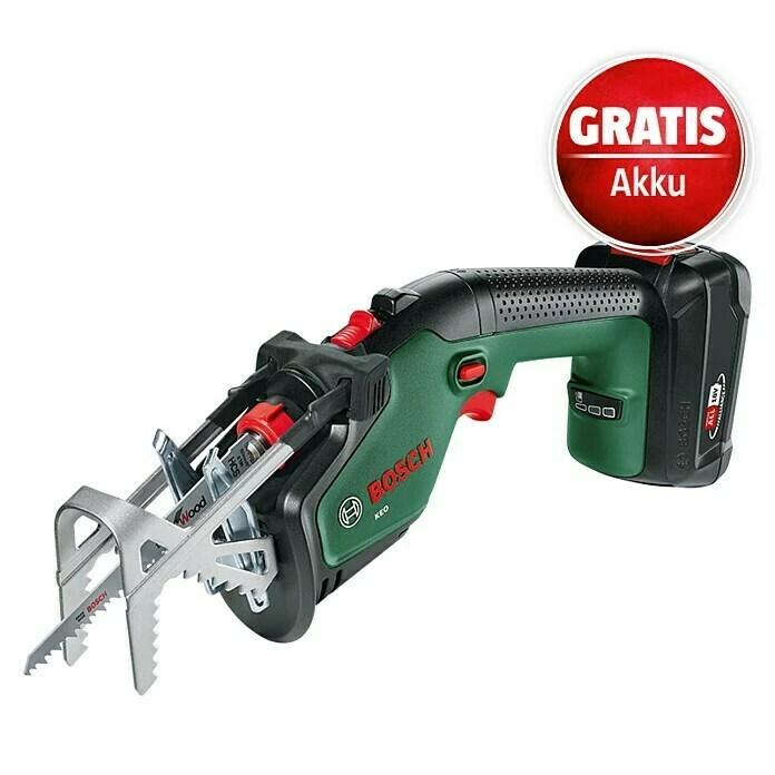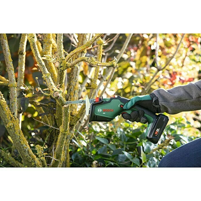 Die Bosch Akku-Gartensäge Keo 18 ermöglicht auf Grund ihres ergonomischen Designs und ihrer kompakten Größe ein einhändiges Arbeiten. Dank dem Bosch-SDS wird ein blitzschneller, werkzeugloser Messerwechsel garantiert. Der abnehmbare Fixierbügel stabilisiert das Schnittverhalten und verhindert das Springen des Sägeblatts. Mit dem Schweizer Qualitätssägeblatt können Äste bis zu 80 mm sauber geschnitten werden. Dank elektronischem Zellschutz (ECP) wird der 18 Volt Akku vor Überhitzen, Überladen und Tiefenentladung geschützt.