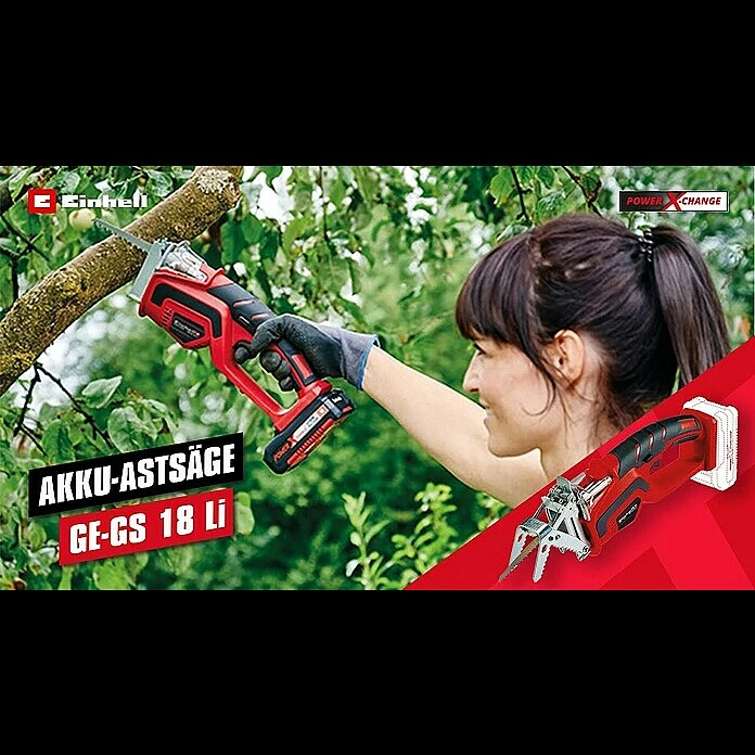 BAUHAUS Einhell Power X-Change Akku-Astsäge GE-GS 18 Li-Solo 18 V, Ohne Akku, Hubzahl: 1.500 U/min – 2.800 U/min
