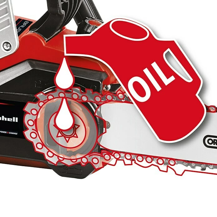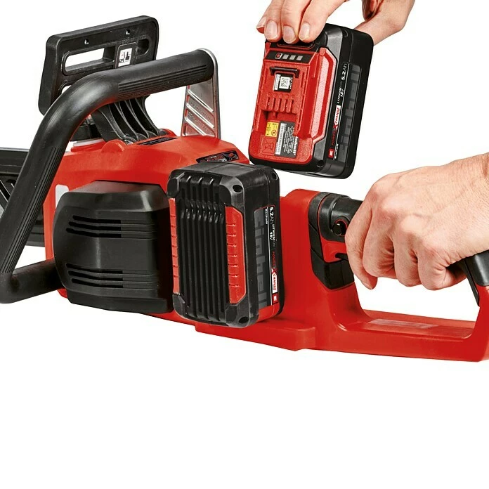 Die Einhell Akku-Kettensäge GE-LC 36/35 Li-Solo bietet Power und Flexibilität. Sie ist Mitglied der Power X-Change-Familie. Zwei 18 V-PXC-Akkus speisen den Einhell Brushless Motor, einen bürstenlosen Elektromotor, mit Energie. Durch das Oregon Qualitätsschwert und -kette arbeitet sie sich auch in größere Stämme. Kettenspannung und -wechsel erfolgen werkzeuglos. Sicherheit gewährleisten der Krallenanschlag aus Metall ebenso wie der Rückschlagschutz, die Sofort-Kettenbremse und der Kettenfangbolzen. Durch den ergonomischen Softgrip liegt die Akku-Kettensäge sicher und angenehm in der Hand. Die Kettenschmierung erfolgt automatisch, es ist eine große Öleinfüllöffnung vorhanden. Akku und Ladegerät sind separat erhältlich.