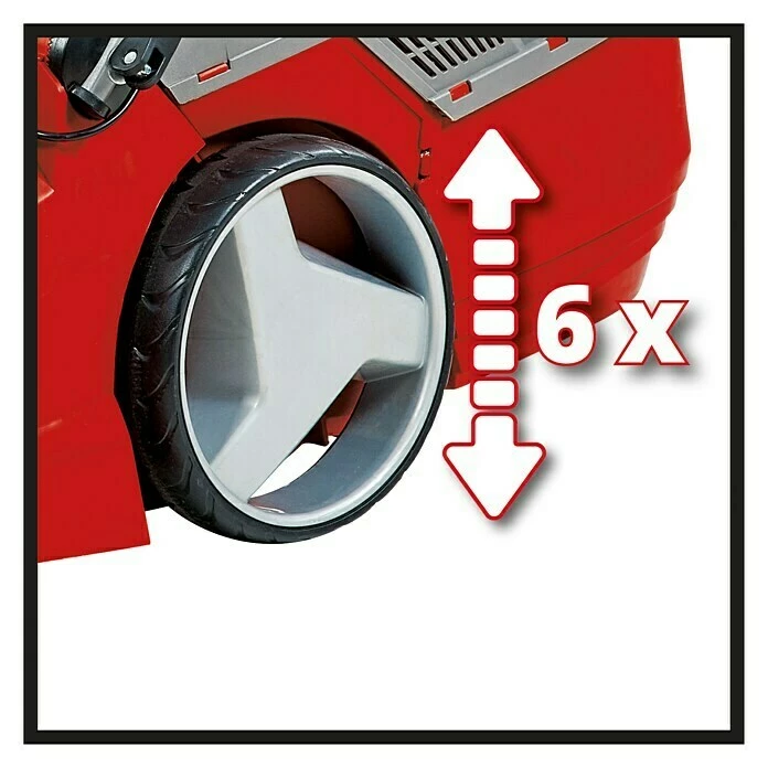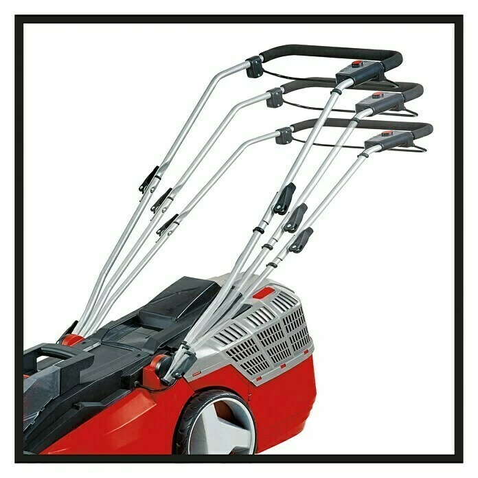 Der Akku-Rasenmäher GE-CM 43 Li M Kit ist für eine Rasenfläche von maximal 600 Quadratmetern ausgelegt und hat eine Schnittbreite von 43 Zentimetern. Durch den Akkubetrieb ist er unabhängig vom Stromnetz nutzbar. Die erhöhten Hinterräder machen den Rasenmäher zum geländefähigen Highwheeler und schonen durch ihre verbreiterte Oberfläche den Rasen. Der Führungsholm ist in drei Stufen höhenverstellbar und passt sich damit jeder Körpergröße an. Zur platzsparenden Aufbewahrung kann der Führungsholm geklappt werden. Beim Transport unterstützt der zentral gelegene Tragegriff. Die zentrale Schnitthöhenverstellung ist sechsstufig. Die Grasfangbox über eine praktische Füllstandanzeige. Der Rasenmäher ist besonders energieeffizient da er mit einem bürstenlosen Motor ausgestattet ist. Seine Kraftübertragung findet magnetisch statt und verliert dabei kaum Reibungsenergie im Vergleich zu herkömmlichen Bürstenmotoren. Angetrieben wird der Rasenmähers mit zwei 18 Volt-Akkus. Diese sind, wie der Rasenmäher auch, Teil des Power X-Change Systems von Einhell. Dabei können alle Akkus und Geräte untereinander ausgetauscht werden. Im Lieferumfang sind zwei Akkus und Ladegeräte enthalten, sodass der Rasenmäher, ohne extra erworbenes Zubehör, sofort in Betrieb genommen werden kann.