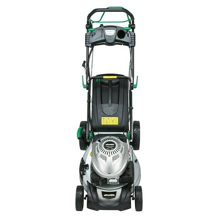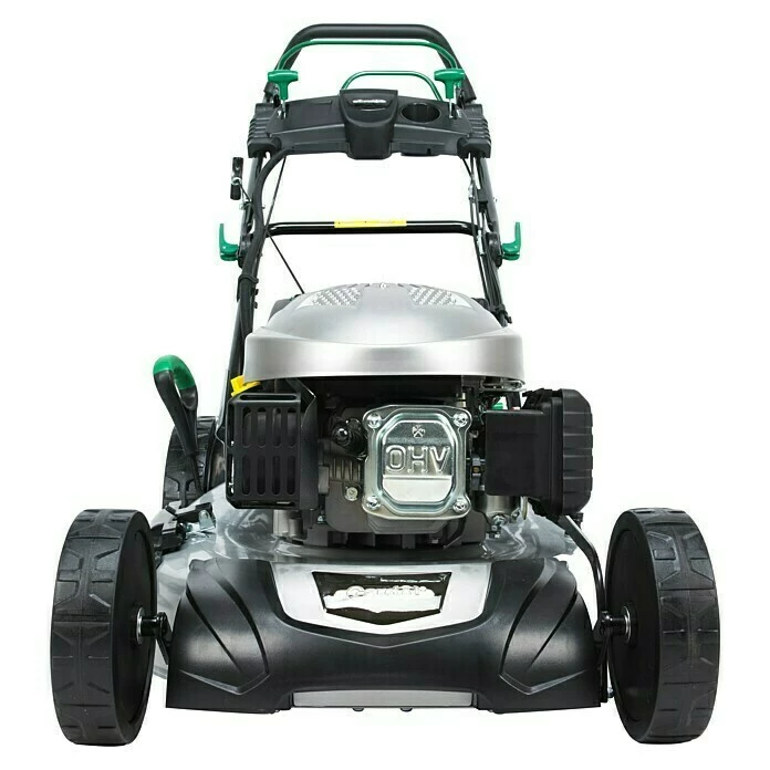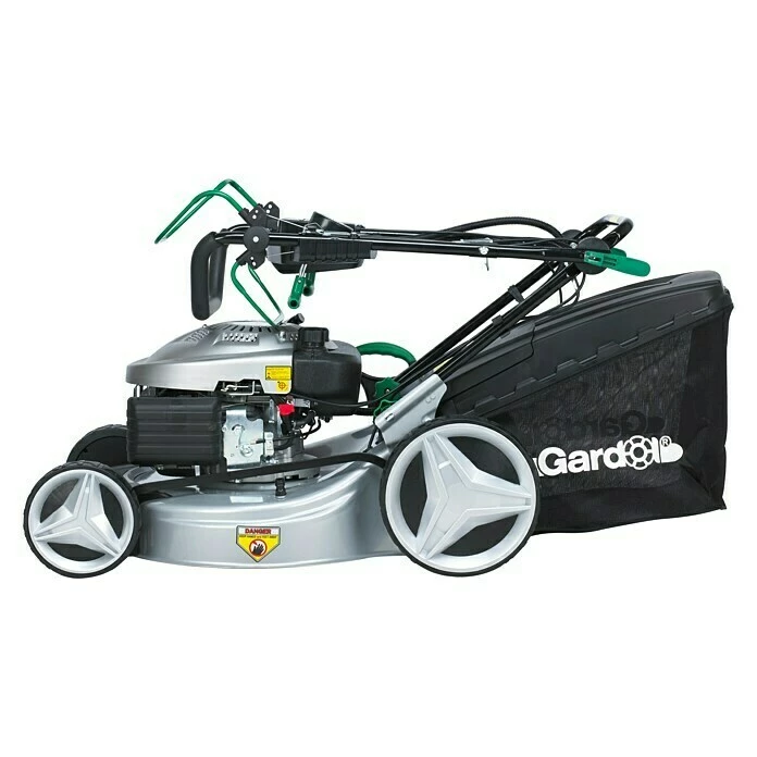Der kraftvolle GBD-51REV Benzin-Rasenmäher besticht durch sein modernes Design und einen leistungsstarken Motor mit 2,9 kW (entspricht ca. 3,77 PS). Dank der extragroßen, kugelgelagerten Hinterräder mit “easy to push”- Funktion werden Bodenunebenheiten besser ausgeglichen und garantieren so ein schönes Schnittbild und eine komfortable Führung. Die Schnittbreite des Rasenmähers beträgt 51 cm und ist für Rasenflächen bis 1.900 m² gut geeignet. Seine Schnitthöhe ist von 25 mm bis 75 mm 7-fach verstellbar. Der großzügige Harttop- Auffangsack mit einem Volumen von 60 l verfügt über eine Füllstandsanzeige und sammelt Rasenschnitt zuverlässig ein. Durch die praktische 3-in-1-Funktion kann man jedoch frei entscheiden, ob der Fangsack das Mähgut auffängt, ob es zur Seite ausgeworfen werden soll oder ob der Rasenschnitt zum Mulchen ausgeworfen wird. Um die verschiedenen Funktionen nutzen zu können, werden ein Kombi-Messer und ein Mulchkit mitgeliefert. Das robuste Gehäuse aus Stahl verspricht eine lange Lebensdauer und durch einen ergonomischen Führungsholm mit Deluxe-Cockpit ist für komfortables Rasenmähen gesorgt.