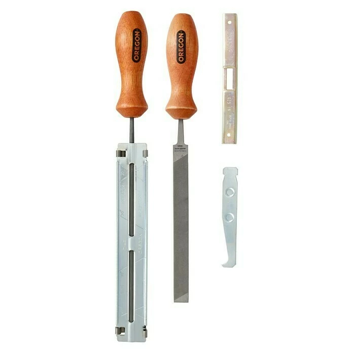 Der Schärfsatz von Oregon ist das optimale Starterkit für die Ketten- und Schienenwartung. Der komplette Feilenhalter mit einer Rundfeile von 4,8 mm eignet sich ideal für leichtes und präzises Schärfen der Sägekette. Der Schwertnut-Reiniger kann genutzt werden zum Reinigen der Schwertnut und der Ölbohrung.