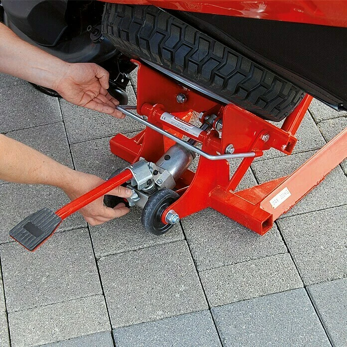 Der Cliplift Traktorenheber von Oregon hebt stufenlos über Hydraulik Ihren Rasentraktor an und vereinfacht so Wartungs- und Reinigungsarbeiten am Mähdeck. Der Hebevorgang stoppt automatisch bei 45°, so dass ein Umkippen des Rasentraktors nicht möglich ist. Durch die doppelte mechanische Sicherheitssperre kann bei einem Druckverlust in der Hydraulik der Mäher nicht absinken. Der Cliplift ist dank seiner Rollen leicht zu transportieren. Zur platzsparenden Aufbewahrung wird der Traktorheber ganz einfach zusammengeklappt und an der Wand montiert.