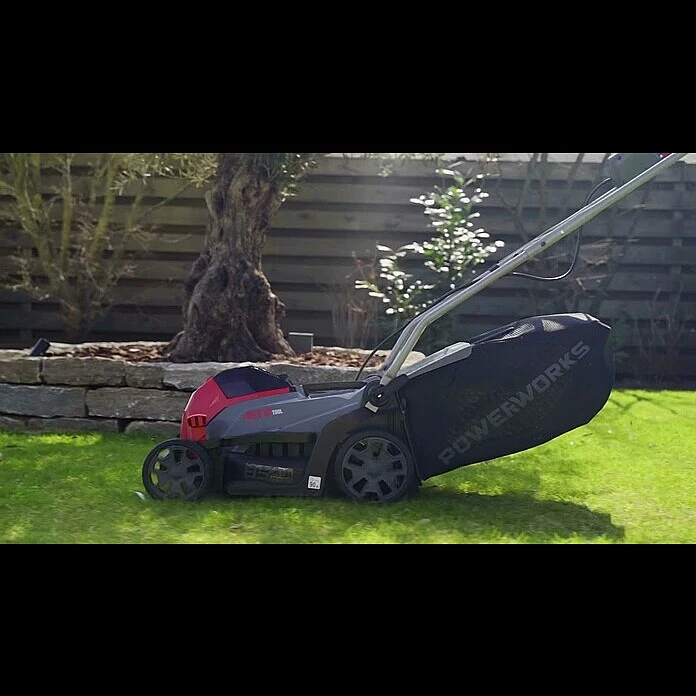 Der Akku-Rasenmäher PD48LM46SP von Powerworks ist ein leistungsstarkes und zuverlässiges Mähgerät. Abhängig vom gewählten Akku erbringt der Rasenmäher eine Flächenleistung zwischen 300 und 900 m². Das Gewicht von 26 kg führt dazu, dass der PD48LM46SP sicher und bequem durch den Garten manövriert werden kann. Darüber hinaus wird das Führen des Mähers dank des variablen Radantriebs erleichtert. Ein äußerst robustes Gehäuse aus Stahlblech schützt das Gerät vor Beschädigungen. Der Akku-Rasenmäher eignet sich hervorragend für den Vorgang des Mulchens, wobei das geschnittene Gras fein zerhäckselt und als natürlicher Rasendünger wiederverwendet wird. Zudem steht die Seitenauswurf-Funktion zu Verfügung. Der PD48LM46SP erbringt eine Schnittbreite von 46 cm.
