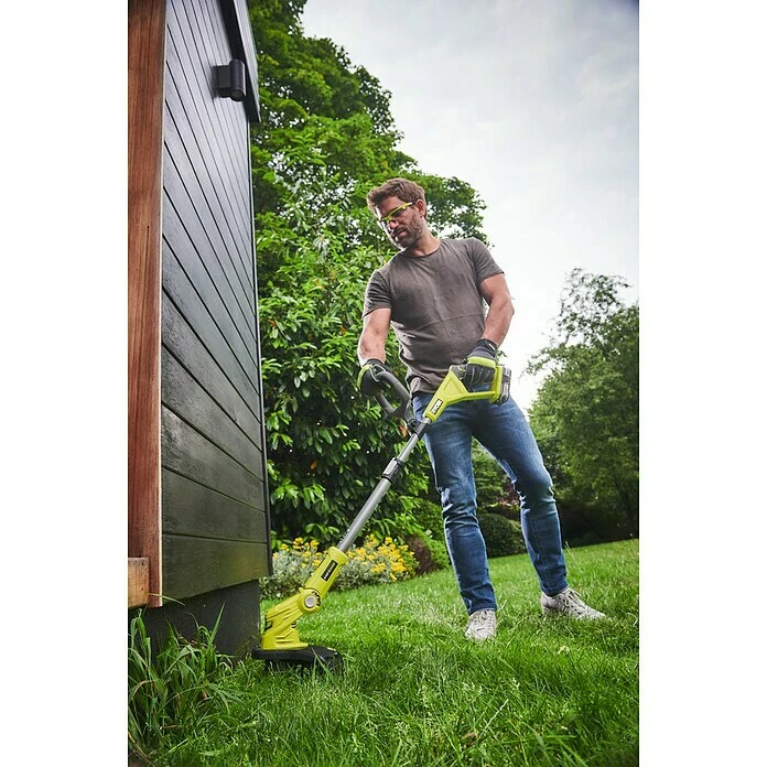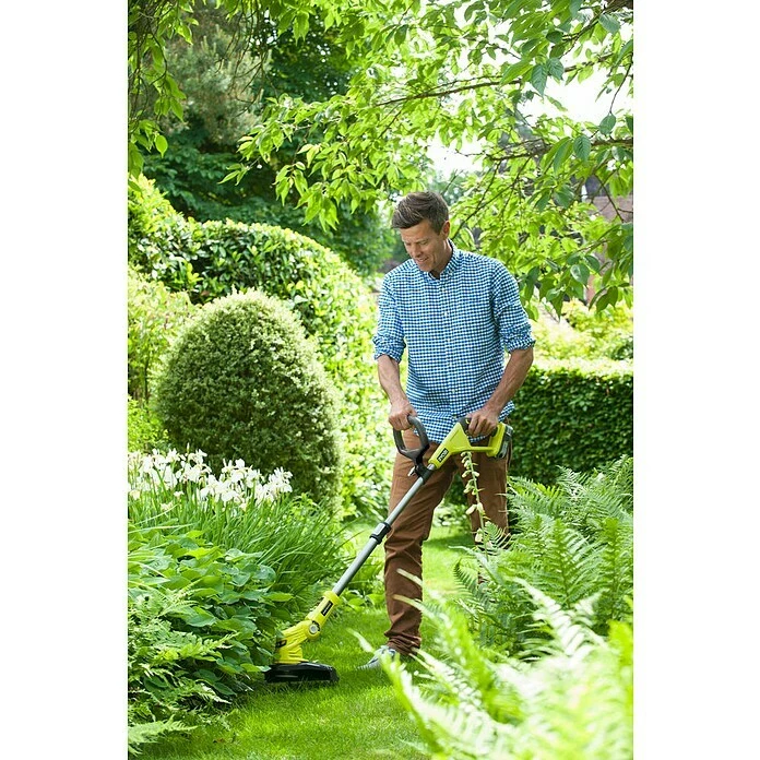 Der Ryobi ONE+ Akku-Rasentrimmer OLT1832 eignet sich ideal zum Schneiden von Rasenkanten und kleinen Rasenflächen, die nicht mit dem Rasenmäher bearbeitet werden können. Der Rasentrimmer ist mit einer Fadenspule ausgestattet, die die Fadenlänge bei Abnutzung automatisch anpasst und so eine konstant gute Arbeitsqualität erreicht. Der Kopf ist mit der Easy-Edge Funktion versehen, die einen einfachen Wechsel von Trimmen zum Kantenschneiden ermöglicht. Angetrieben wird der robuste Rasentrimmer durch den 18 V ONE+ Li-Ionen Akku, der durch die IntelliCell-Technologie eine bis zu 10% höhere Leistung erreicht und separat als Zubehör erhältlich ist. Über den Teleskopstiel kann die Länge angepasst werden, wodurch gemeinsam mit der GripZone ein hoher Arbeitskomfort ermöglicht wird. Der Zweihandgriff ist in der Neigung ebenfalls verstellbar.